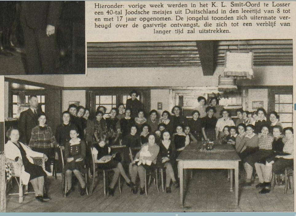 4.1.1939 In Oldenzaal steigt eine Gruppe von 40 Mädchen aus; mit dem Bus von Oldenzal ins K.L. Smit-Oord in Losser, Flüchtlingsheim für jüdische Mädchen von Januar bis August 1939
