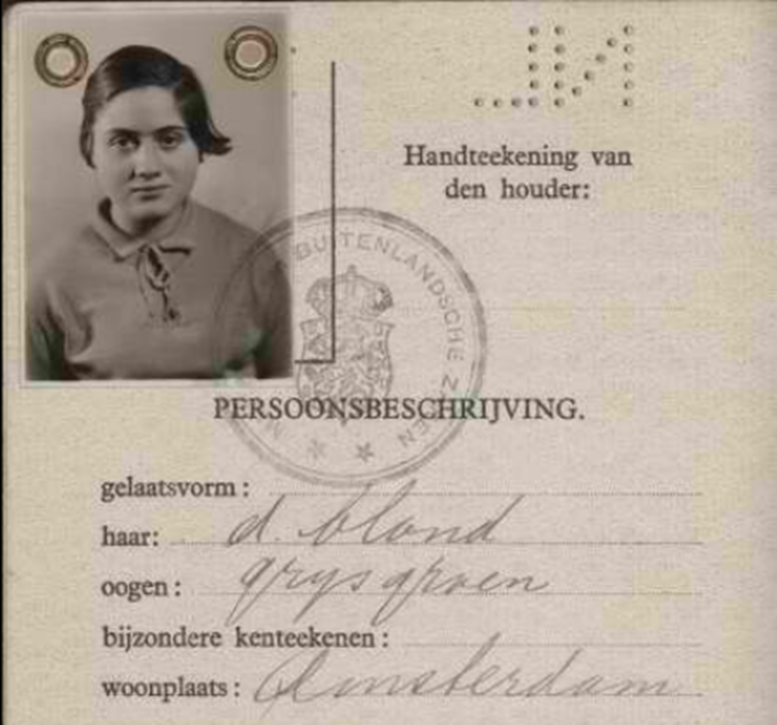 22.11.1939 Passausstellung für Ruth Kochmann in Amsterdam