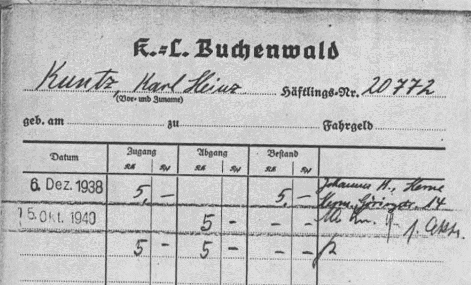 10.11.1938 Karl-Heinz Kuntz als „Aktionsjude“ ins KL Buchenwald; Häftlingsnummer 20772