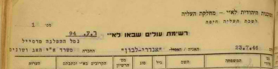 23.7.1946 Ankunft von Lore Lina und Schmuel Boleslawski in Haifa auf der SS ANDRE-LEBON