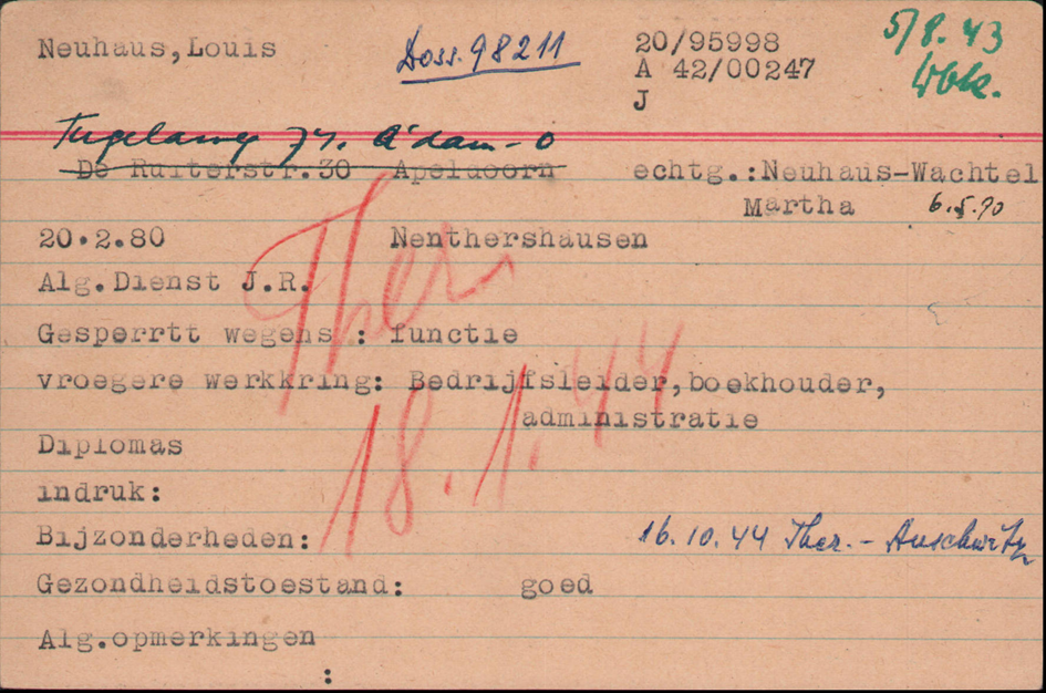 Louis Neuhaus bekommt die Häftlingsnummer 21720, Neffe Kurt Neuhaus die Nr. 20721