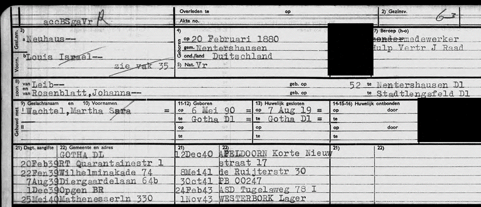 5.8.1943 Einweisung von Louis und Martha Neuhaus mit Tochter Lore in das polizeiliche Judendurchgangslager Westerbork