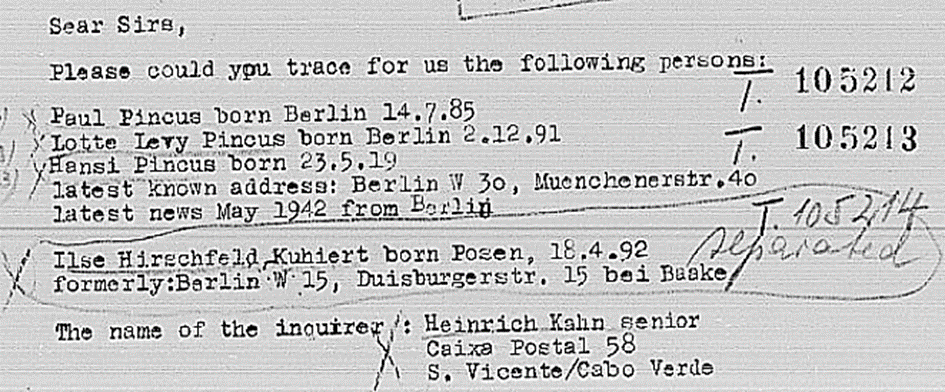 25.9.1946 Suchanzeige für Hans Pincus und seine Eltern von Heinrich Kahn