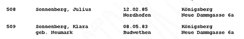 Auf dem Königsberger Transport befanden sich auch die Eltern Erich und Klara Sonnenberg.