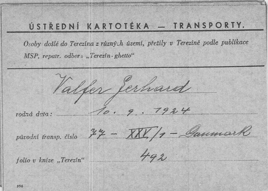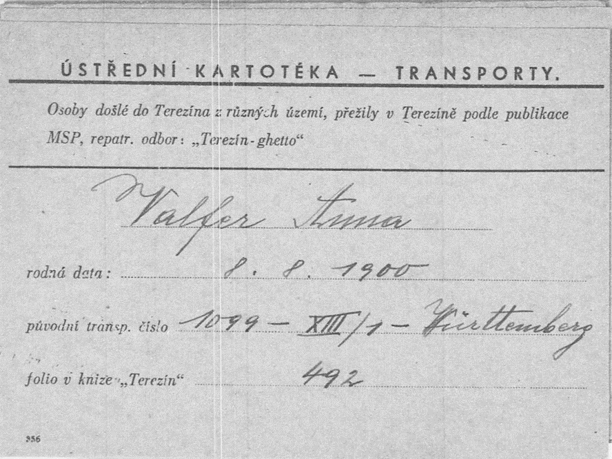In Theresienstadt trifft er auf seine beiden Eltern, und Anna Valfer, die am 22.8.1942 aus Stuttgart nach Theresienstadt deportiert wurden.