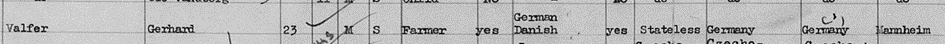 5.11.1940 Gerhard Valfer bei Familie Petersen in Toksværd, Hammer, Præstø, Seeland beim dänischen Census