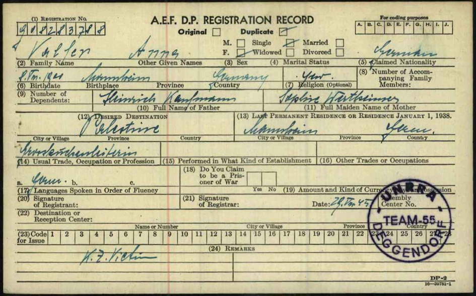 Mutter Anna Kaufmann *8.8.1900 in Mannheim