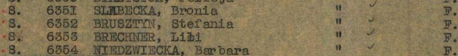 Sara Brechner *20.3.1915 in Sosnowiec; ✡ ca 1943; oo Feiwel Brumer