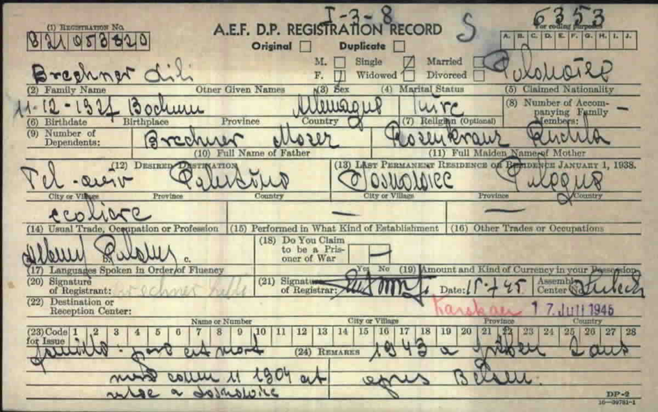 17.5.1945 Lilly Brechner im DP Camp Lübeck