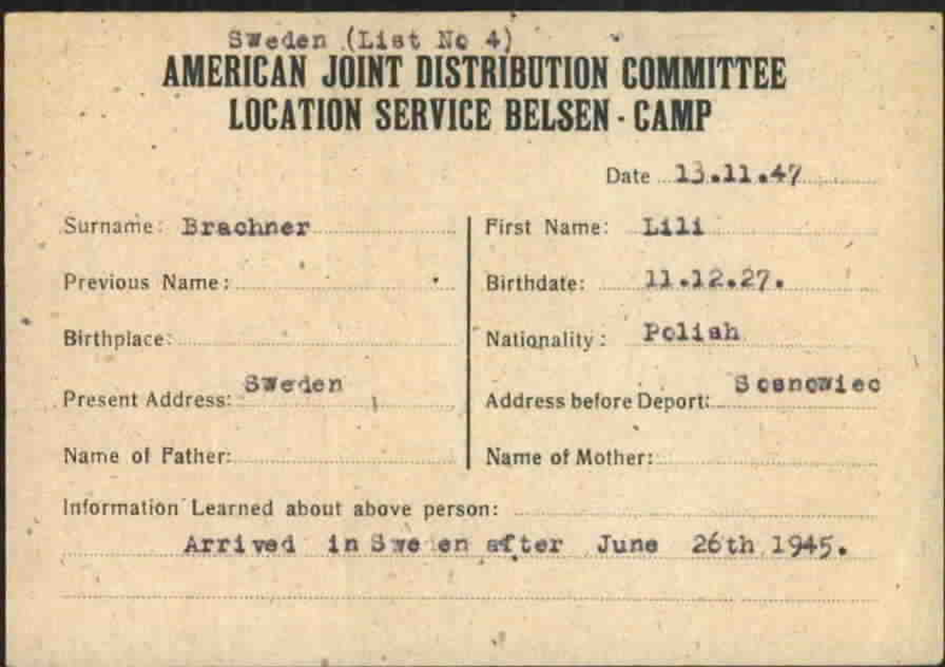 Nach dem 26.6. 1945 Ankunft von Lilly Brechner in Schweden