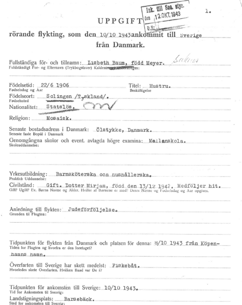 8.-9.10.1943 Liesbeth mit Tochter Miriam auf einem Fischerboot von Kopenhagen nach Schweden