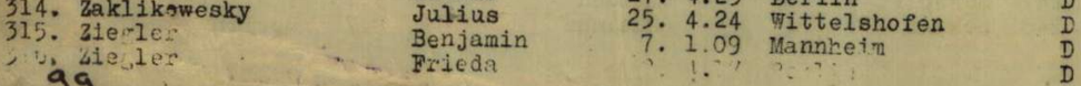 Isaak Ziegler *16.10.1907 in Mannheim; ✡?