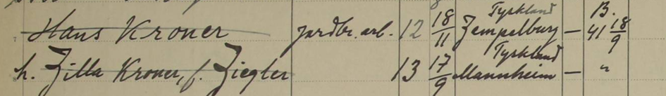 Heirat 18.9.1941 in Idingstad Hans Kroner*18.11.1912 (18.12.1916) in Zempelburg; ✡ 24.2.1980 in Stockholm