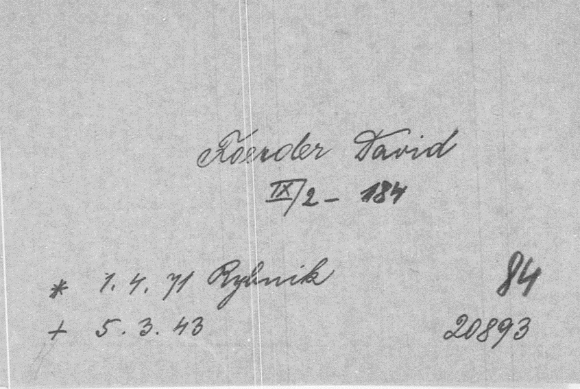 Vater Isaac David Förder *1.4.1871 in Rybnik; ✡5.3.1943 in Theresienstadt