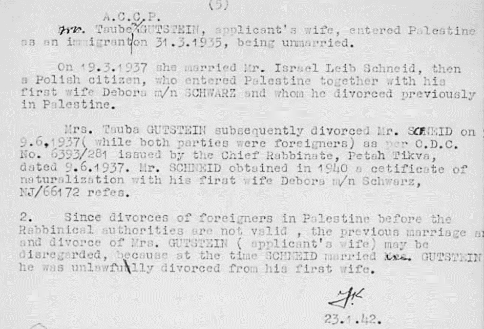 23.1.1942 Einbürgerung von Viktor und Taube Förder in Palästina