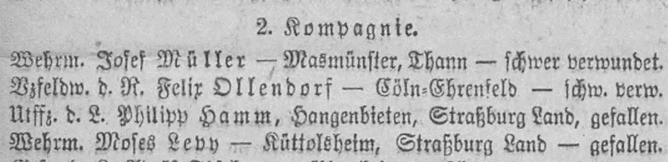 10.9.1914 Wehrmann Moses Levy 2. Kompagnie des Landwehr-Infanterieregiments 99, gefallen (Vater des Bruders Theodor)