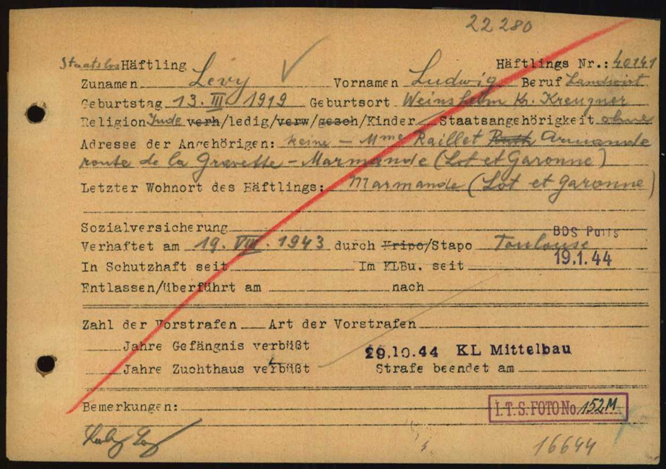 17.1.1944 vom BDI Paris aus dem KL Royallieu (Compiegne) nach Buchenwald deportiert