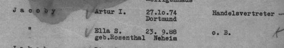 Vater Arthur Jacoby *27.10.1874 in Dorstfeld (Dortmund); ✡nach 11.1942 Minsk