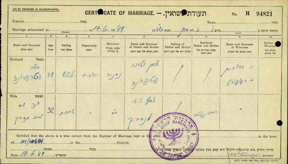 17.6.1949 Zweite Ehe mit Moshe Jakov Peterfreund
