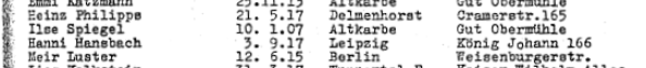 Hanni Manzbach auf der Gestapoliste des vom Makkabi Hazair im Gut Winkel ausgerichteten Führerkursus mit 64 Teilnehmern aus Deutschland