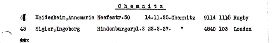 3.5.1939 Ingeborg Sigler auf der Liste des Kindertransports, offenbar nicht angetreten