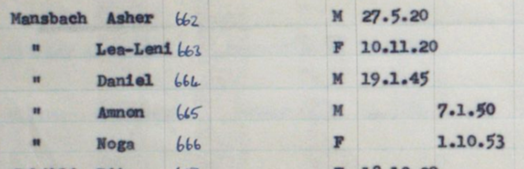 Heirat 1942 in Wolverhampton Ascher Siegmund Manzbach/ HaLevi Maniv *24.5.1920 in Leipzig; ✡ 21.10.1987 Maayan Zwi;