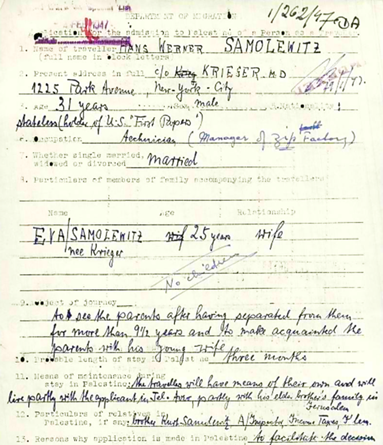 29.3.1949 Einreise nach Jerusalem zum Besuch der Eltern