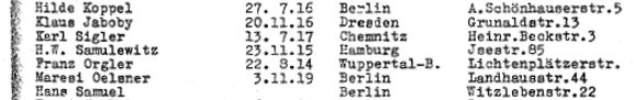 H.W. Samolewitz auf der Gestapoliste des vom Makkabi Hazair im Gut Winkel ausgerichteten Führerkursus mit 64 Teilnehmern aus Deutschland
