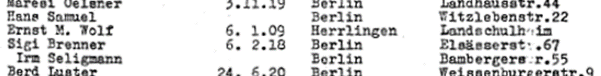 Hans Samuel und Irmgard Seligmann auf der Gestapoliste des vom Makkabi Hazair im Gut Winkel ausgerichteten Führerkursus mit 64 Teilnehmern aus Deutschland