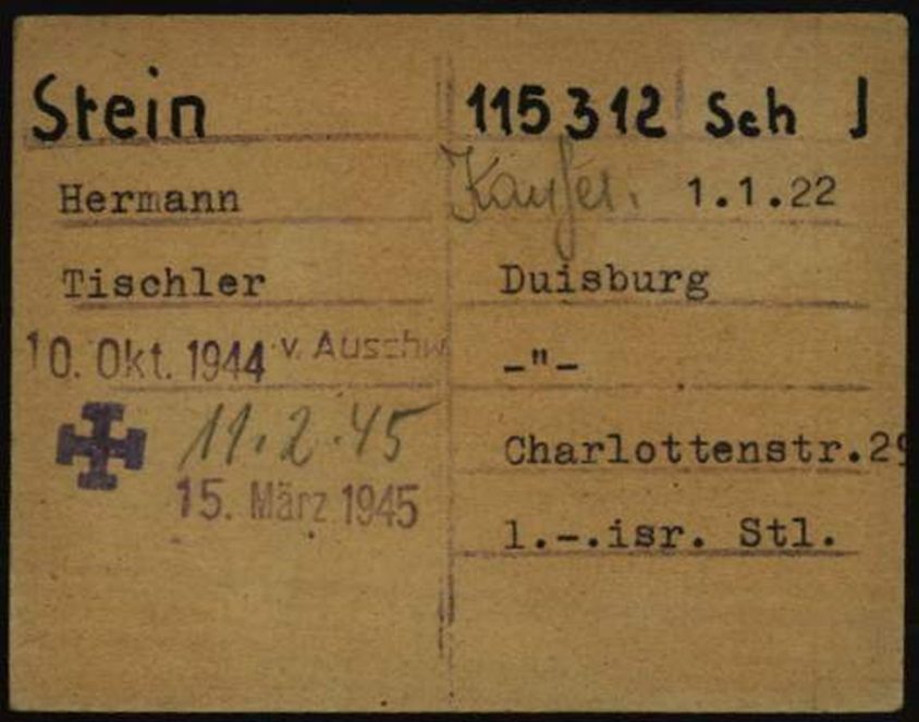 Bernhard Stein*15.6.1923 in Duisburg; ✡31.3.1944 in Auschwitz