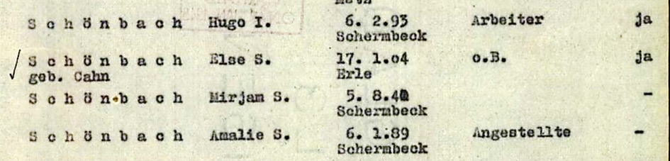 Hugo Schönbach *6.2.1893 in Schermbeck; ✡ in Riga; oo Else Cahn (*17.1.1904 in Erle; ✡ in Riga)