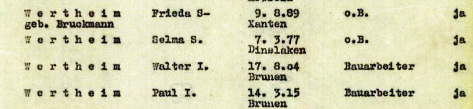 11.12.1941 Hugo, Elsa, Mirjam und Amalie Schönbach deportiert mit Selma Wertheim und ihren Söhnen mit 1007 Juden ab Düsseldorf nach Riga