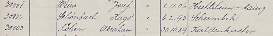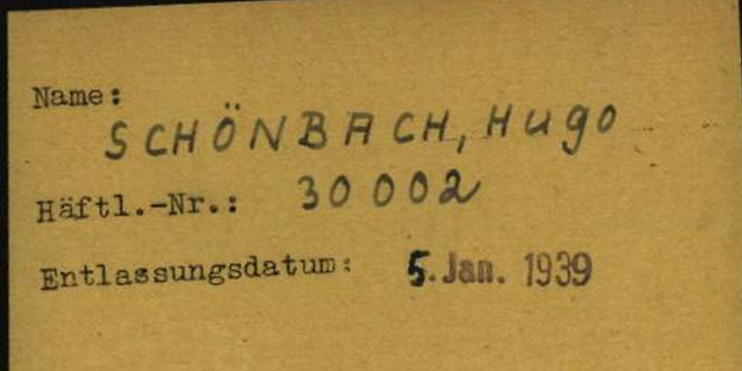 Hugo Schönbach, Häftlingsnummer 30002; 5.1.1939 Entlassung aus dem KL Dachau 5.1.1939