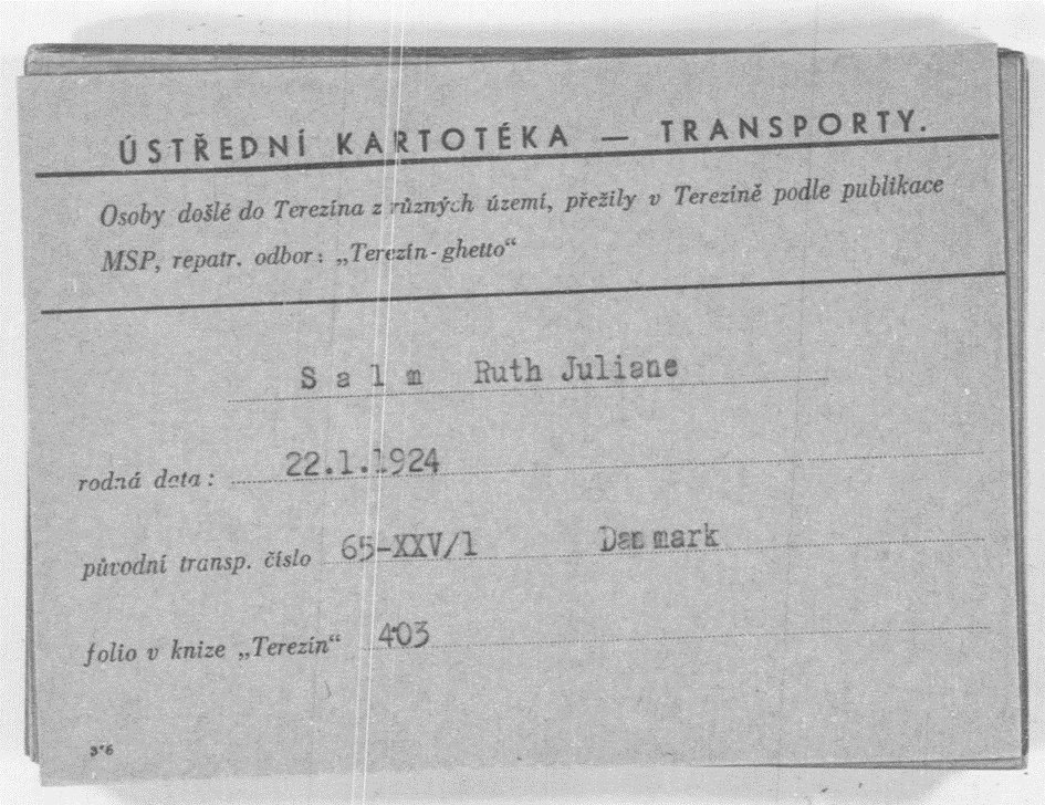 5.10.1943 Rut Salm auf Transport XXV/1 und 20 weiteren Chaluzim der Jugendalija in Dänemark, insgesamt 83 in Dänemark Inhaftierten nach Theresienstadt