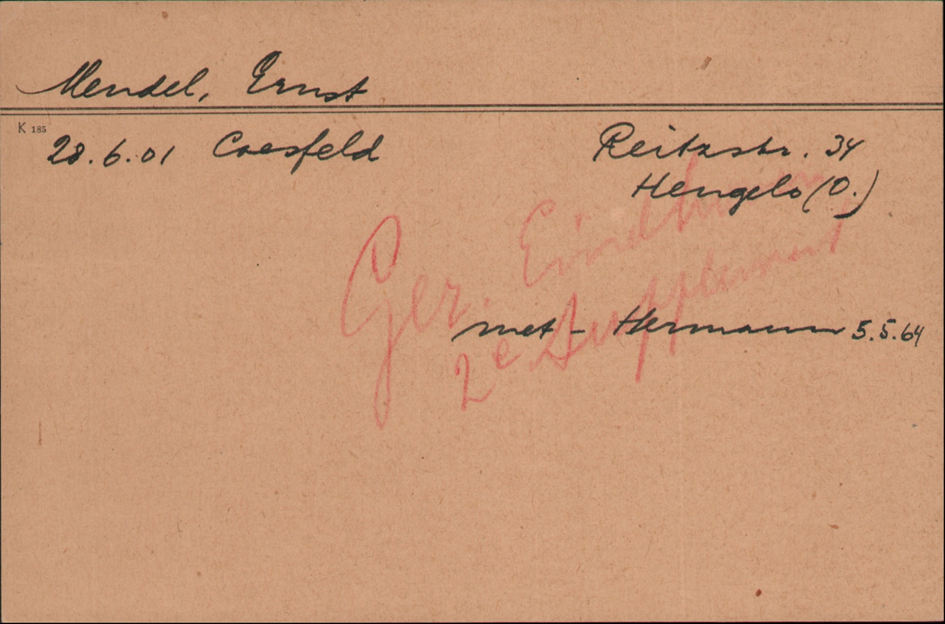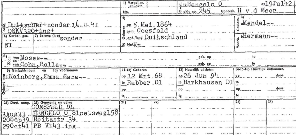 2.8. 1933 Ernst Mendel mit den Eltern Hermann und Emma Mendel aus Coesfeld nach Hengelo; Schwester Adele hatte 1932 Julius Joep Cohen aus Hengelo geheiratet