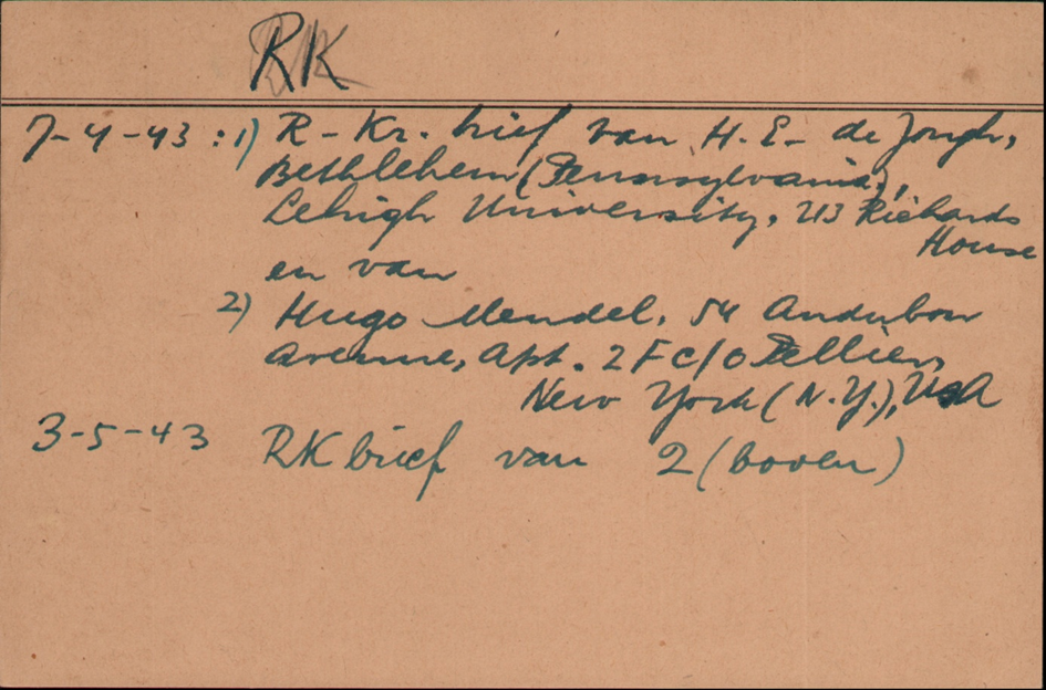 April /Mai 1943 zwei Rot-Kreuz-Briefe von Bruder Hugo Mendel aus New York und Henri de Jongh aus Bethlehem, Penyslvania