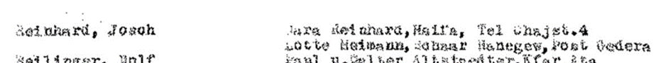 Er gibt als Zieladressen Sara Reinhard in Haifa und Lotte Heimann an