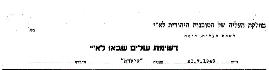 29.1.1940 Ankunft Haifa nach Abschluß von Verhandlungen zwischen Sochnut (Jewish Agency) und britischer Mandatsregierung