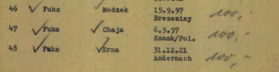Heirat 16.11.1941 im Ghetto Lodz mit Margarete Erna Fuks *31.12.1921 in Andernach; ✡August 1944 in Auschwitz