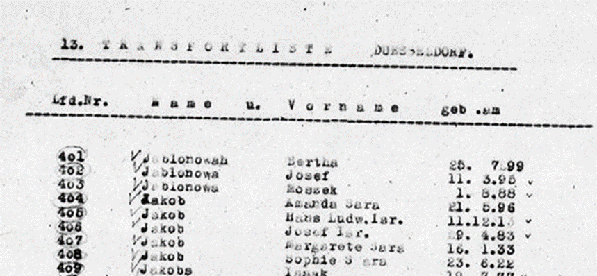 26.10.1941 Verbringung von Hans Jacob und Erna Fuks mit ihren Eltern von Wuppertal nach Düsseldorf