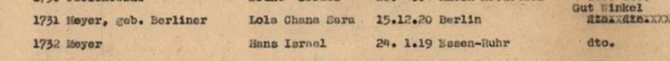 1.3.1943 Hans und Lola Meyer mit 19 Chaluzim aus Gut Winkel auf dem 31.Osttransport Berlin Auschwitz