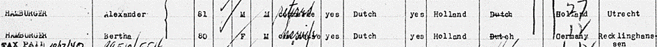 Heirat 22.11.1886 in Essen mit Alexander Hamburger *7.10.1858 in Utrecht; ✡10.8.1943 Los Angeles