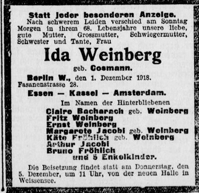 Ida Cosmann *31.3.1852 ✡1.12.1918 oo Albert Weinberg