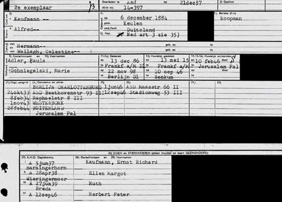 Vater Alfred Kaufmann *6.12.1884 in Köln; ✡ 21.12.1957 in Amsterdam