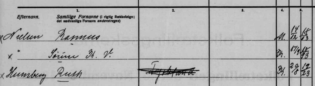 5.11.1940 Ruth Humberg in Særslev, Skovby, Odense bei dänischem Census bei Vater und Sohn Sören und Rasmus Nielsen