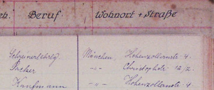 25.7.1938 Zuzug von Hans Hartmann ins Lehrlingsheim der IKG München, Hohenzollernstraße 4